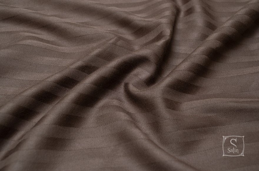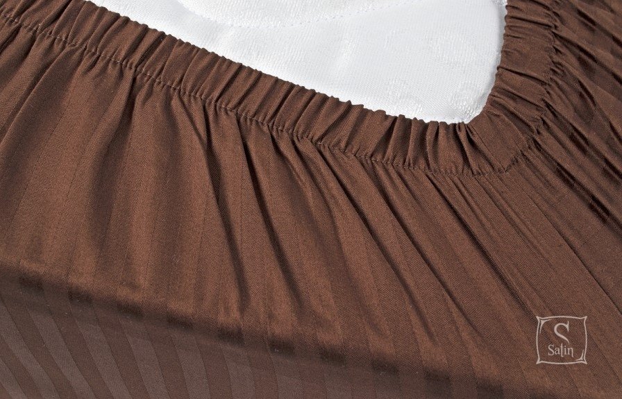 Простирадло на резинці Lotus виконана в однотонному коричневому кольорі з жаккардовими полосами. Ширина жаккардової полоси - 1 см.