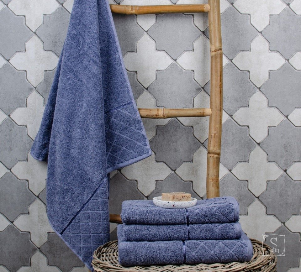 Махровий рушник Аїша. Жаккард Ромби темно-василькового кольору