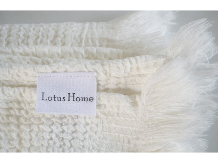 Рушник вафельний Lotus Home з бахромою з 80% бавовни, 20% бамбука (вафельне полотно), з малюнком, утвореним рельєфними та поперечними рубчиками, приємного кольору з легкою текстурою . Щільність 300 г/м2.