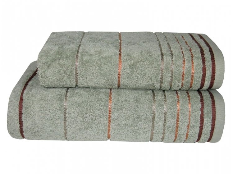 Махровий якісний бавовняний рушник преміум класу Parisa Stripe Cotton D-272 оливкового кольору зі 100% бавовни (махра ), щільність - 600 г/м².