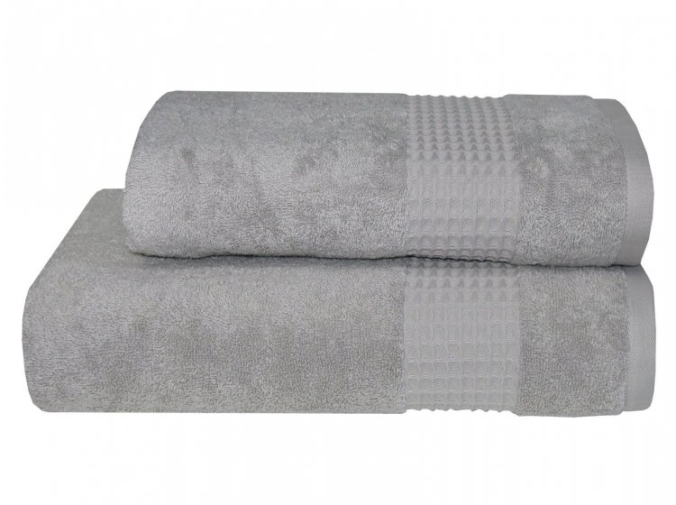 Махровий якісний бавовняний рушник преміум класу   Parisa Terry Waffle J-403 світло-сірого кольору зі 100% бавовни (махра, жаккард), щільність – 550 г/м².