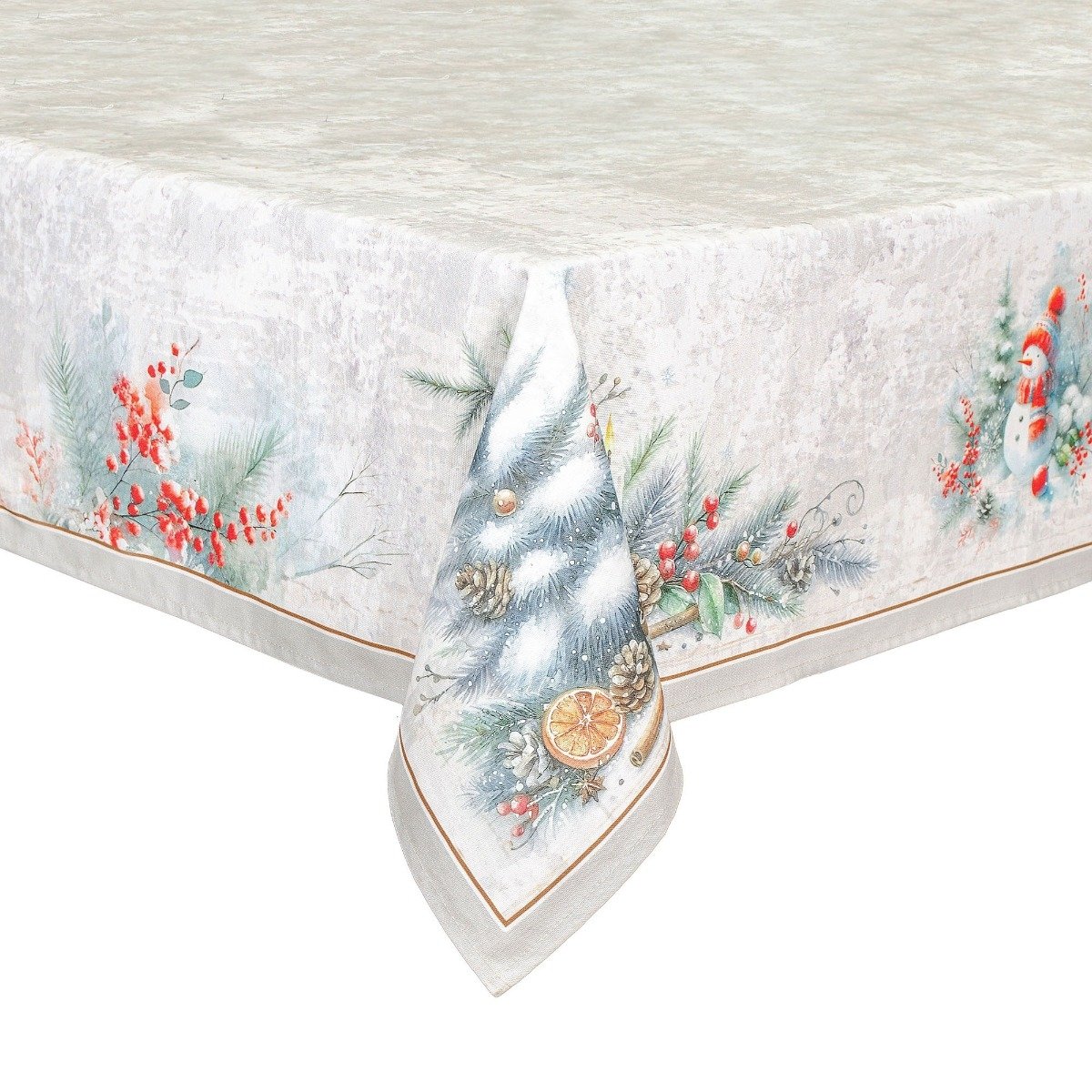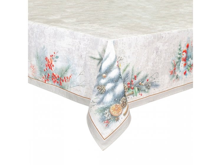 Ошатна скатертина Home Line Сніговик та ялинка сірого кольору з кольоровим новорічним малюнком по периметру. Дана скатертина чудово підходить для оформлення столу та створення затишку у Вашому будинку. Виріб за своїм дизайном чудово підходить для будинків, готелів, пансіонатів, будинків відпочинку, ресторанів, кафе, барів та інших житлових та громадських приміщень.