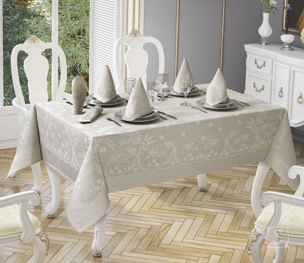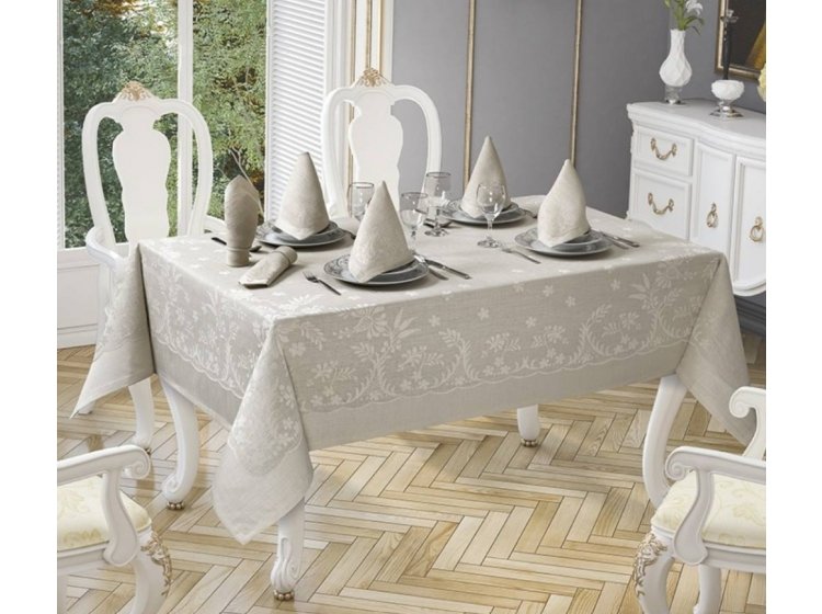 Ошатна турецька скатертина Jackline Pano Linen Grey 9886-5 сірого кольору виконана зі 100% поліестеру, чудово підходить як для домашнього, так і для святкового використання, створить у вашому будинку атмосферу затишку та комфорту.